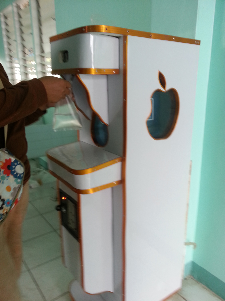 At the port, I noticed this portable water dispenser. I just can’t help but share. The idea is, you get a plastic bag on the top compartment of the “machine”; place some coins, and it dispenses water into the plastic. Creative, right? specially with that “apple logo”. haha!